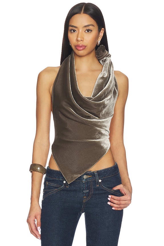 VELVET LEATHER STRAP HALTER 탑